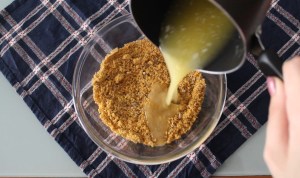 - Tritare i biscotti in un mixer, sciogliere il burro e poi mescolare il tutto in una terrina