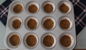 - Versare il composto ottenuto in una teglia da muffins. Con una tazzina o un cucchiaio pressare bene la base di biscotti per renderla compatta. Lasciar riposare in frigo per 30 minuti