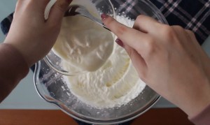 - Nel frattempo preparare la crema per la farcia. Montare la panna, aggiungere lo yogurt e infine aggiungere lo zucchero a velo