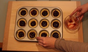 - Inserire i dischetti in uno stampo per muffins imburrato e poi aggiungere la marmellata e le decorazioni