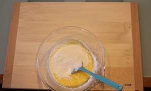 - Sciogliere il burro e mescolarlo con lo zucchero. Aggiungere poi le uova
