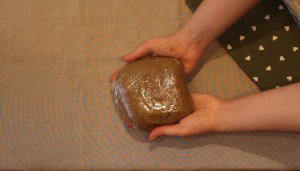 - Aggiungere l’ olio ed impastare energicamente fino ad ottenere un composto friabile ed aggiungere il sale