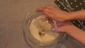 - In una terrina unire farina di riso, farina di grano saraceno e zucchero