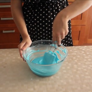 - Aggiungere il colorante in gel scelto (i coloranti liquidi tendono a perdere la loro intensità durante la cottura)