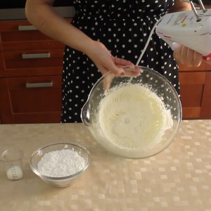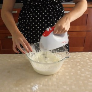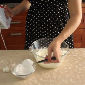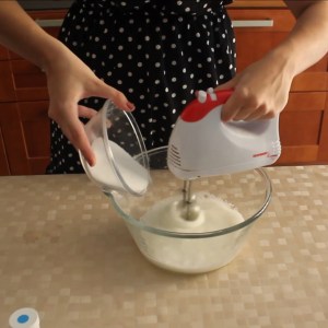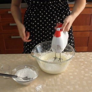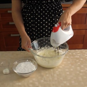- Aggiungere poco per volta lo zucchero a velo
