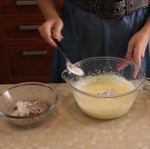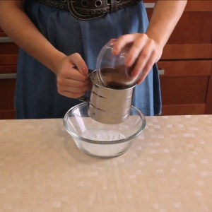 - In una ciotola setacciare farina di riso, fecola di patate, lievito e cacao in polvere e poi lasciare il tutto da parte