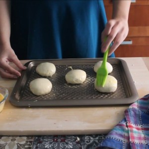 - Spennellare i panini con l’uovo e un po’ di latte (lasciatene un po’ per dopo). Lasciar riposare i panini altri 30 minuti