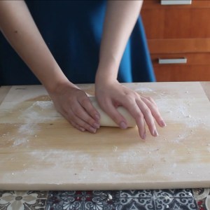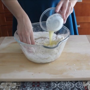 - Impastare energicamente. All’inizio l’impasto può risultare molto sbricioloso, ma lavorandolo diventerà molto liscio