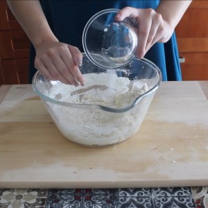 - Fare una palla , coprire con la pellicola e lasciar riposare per due ore in forno con la luce accesa