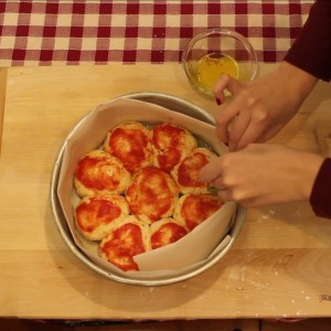 - Farcire la superficie di ogni pallina con la salsa di pomodoro e aggiustare di sale. A piacere aggiungere l’origano. Lasciar lievitare per altri 30 minuti in forno spento con luce accesa