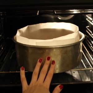 - Foderare con carta da forno oliata uno stampo rotondo da 24 cm ed inserirci le palline