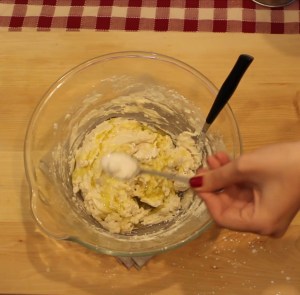 - Far sciogliere il lievito in metà dell’acqua con un po’ di zucchero