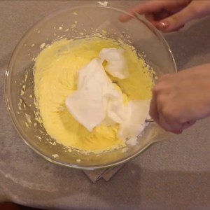 - Montare a neve gli albumi con il restante zucchero ed aggiungerli al composto