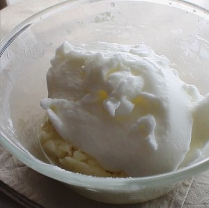 1.  Montare gli albumi a neve fermissima e tenerli da parte