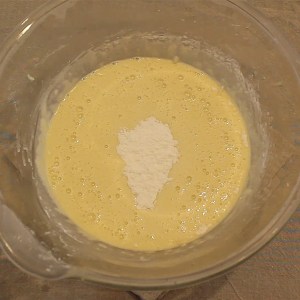 - In una ciotola montare le uova con lo zucchero fino ad ottenere un composto chiaro e spumoso