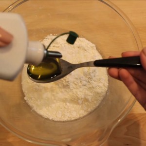 - In una terrina unire farina, lievito e sale. Aggiungere l’acqua e i 2 cucchiai d’olio evo ed impastare energicamente fino ad ottenere un panetto liscio