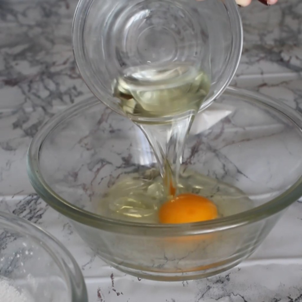 - In un’altra ciotola unire l’uovo, l’olio di semi di girasole e il lievito