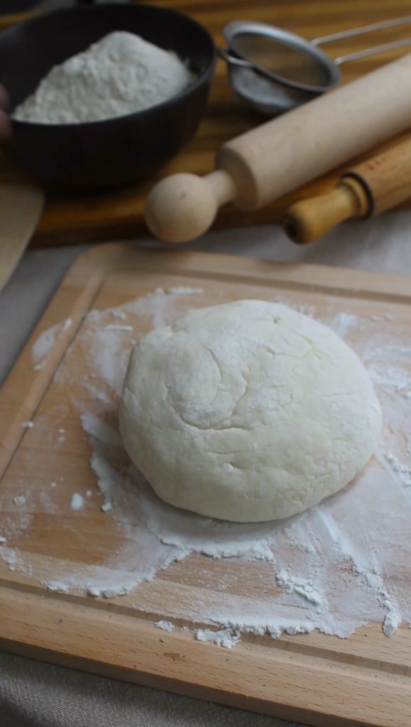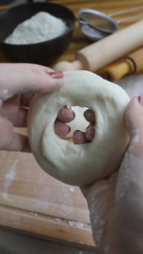 - Dividere l’impasto in 2 palline e bucare ogni pallina al centro.