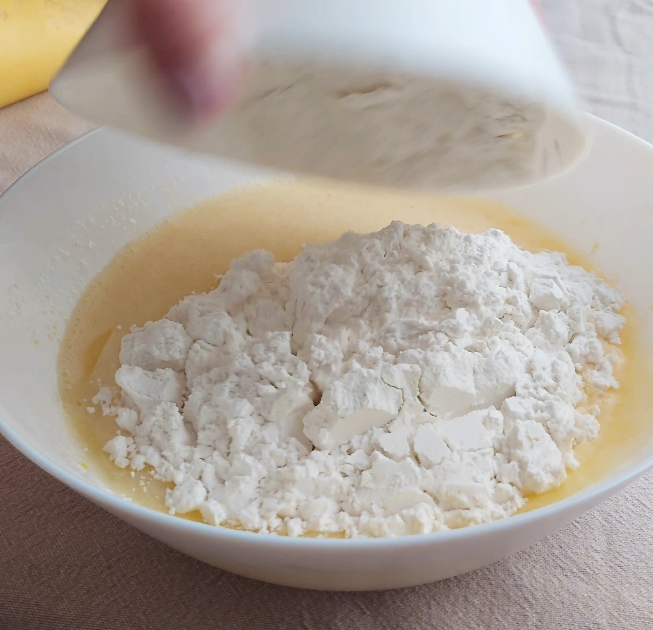 - Setacciare le farine e il lievito e aggiungerle al composto